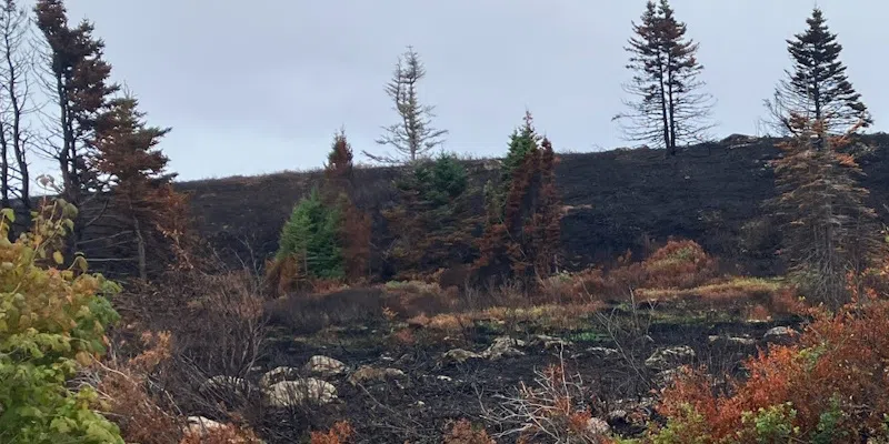 Burnt woods near sports field in Broad Cove (VOCM News)