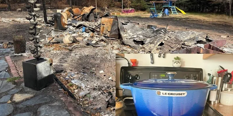 Dwyer says among the few items that were salvaged from the remains of their property was a blue Le Creuset pot, purchased years ago. The high-end cookware is pricey, and Dwyer had collected a few pieces over the years when she found them on sale.